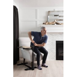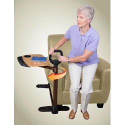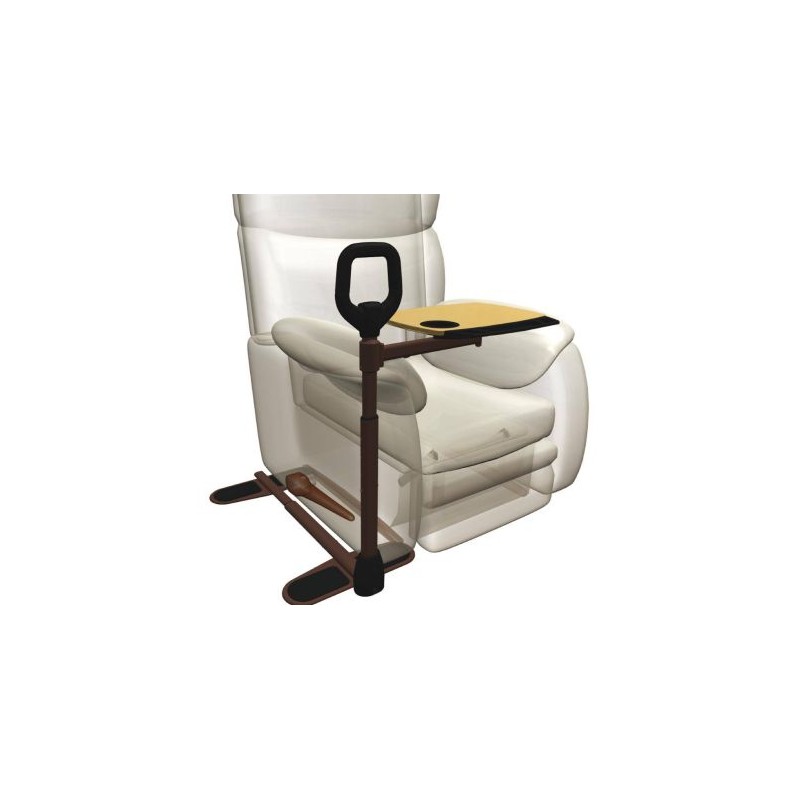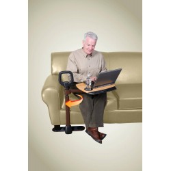 Poignée CouchTray. Avec tablette escamotable, réglable en hauteur et en longueur. Se glisse sous le canapé ou autre meuble. Ergonomique et sécuritaire. Poids 8.8kg. Hauteur de 66.5 à 81cm. Base 40.6x45.7cm. Poids max. sur tablette 13.5kg. Hauteur de poignée 87.5 à 102cm. poignée 17x17cm. diamètre 3cm. Poids max. 113kg