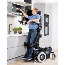 Le Balder Finesse F390 est capable de satisfaire les critères les plus exigeants de l'utilisateur. En effet, au-delà de sa fonction verticalisateur, il facilite votre accessibilité grâce à une hauteur d'assise variable de 34 à 78 cm (44 cm de lift). Et grâce à son lift unique et rapide, vous pouvez à la fois atteindre des objets placés atteindre des objets placés sur des étagères très hautes et glisser vos jambes sous la table à l'heure du repas. De même, les nombreuses fonctions et le système modulaire font de ce fauteuil roulant électrique un outil qui peut être ajusté aux besoins de chaque utilisateur. Avec un poids de seulement 140 kg, le Balder Finesse F390 est également idéal pour la plupart des véhicules adaptés, un critère important à prendre en compte. Dans le même temps, grâce à une fonctionnalité offerte sur tous les fauteuils Balder, vous pourrez demander un diagnostic à distance à votre revendeur en cas de problèmes