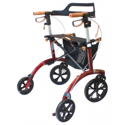 Le déambulateur SALJOL Carbon est un modèle haut de gamme et élégant, votre compagnon idéal. Il est disponible en quatre coloris: vert anglais, bleu nuit, or pur et rouge cuivré. Inspiré des voitures de rêve des années 1950, ce déambulateur est doté d’une structure en fibre de carbone, d’un sac en cuir végan couleur cognac et de poignées en liège hypoallergénique.